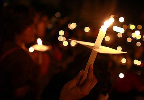 Se trata de El Gritón, ánima sola Unos cien metros más atrás viene el resto del grupo caminando envuelto en una nube de luz creada por las velas que portan protegidas por vástagos de cambur.
