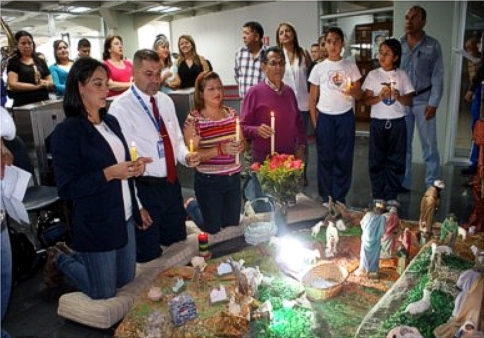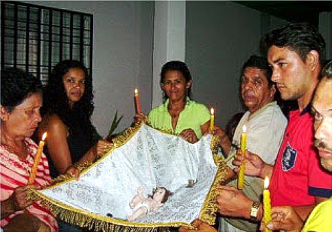 Se empieza dando gracias al señor por mantenernos vivos y sanos en este año nuevo, luego se procede a encender las velas, los padrinos se hincan, toman al niño y salen de la casa a un paseo.